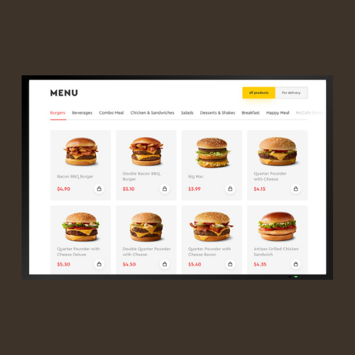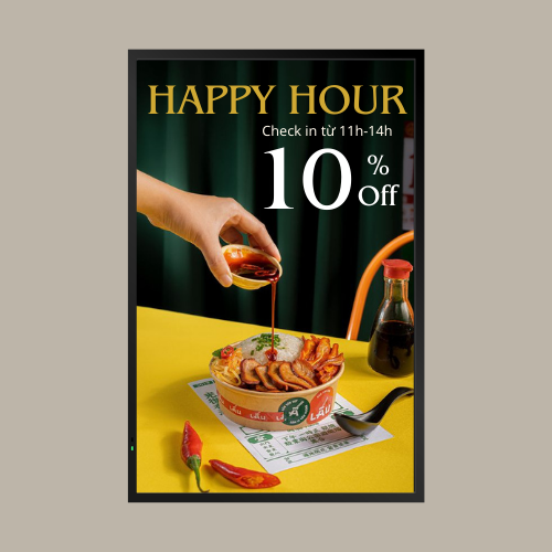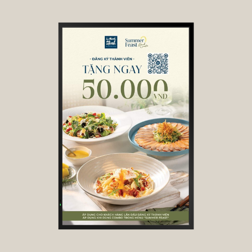 Tối ưu hóa trải nghiệm của khách hàng, từ việc hiển thị menu đa dạng và hấp dẫn đến quảng cáo sản phẩm, tạo ra không gian ẩm thực sống động và thu hút.